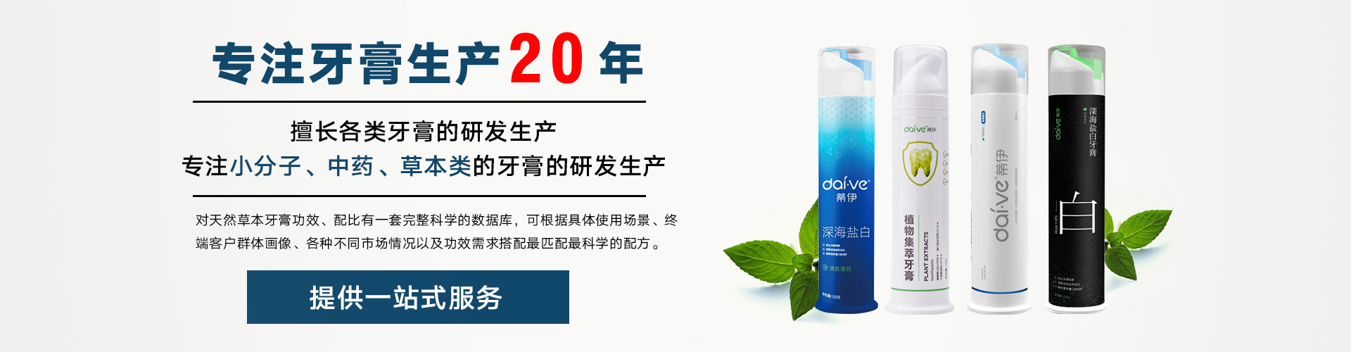 浙江泰康生物科技有限公司地處浙江省歷史名城衢州 是一家集蘆薈種植、產(chǎn)品研發(fā)、農(nóng)產(chǎn)品深加工、銷(xiāo)售為一體的專(zhuān)業(yè)性公司。 專(zhuān)注于日化類(lèi)產(chǎn)品研發(fā)生產(chǎn)18年的泰康生物,具有豐富的牙膏研發(fā)、生產(chǎn)經(jīng)驗(yàn)。 服務(wù)過(guò)上千家企業(yè),擁有超過(guò)數(shù)千種配方,擅長(zhǎng)蘆薈、中藥草本類(lèi)牙膏的研發(fā)生產(chǎn)。 對(duì)于牙膏功效、配比有一套完整、科學(xué)的數(shù)據(jù)庫(kù),可根據(jù)具體使用場(chǎng)景、 終端客戶群體畫(huà)像、各種不同市場(chǎng)情況以及功效需求搭配匹配科學(xué)的配方,適用國(guó)內(nèi)外各類(lèi)市場(chǎng)。 十幾年來(lái),公司銷(xiāo)售業(yè)務(wù)從周邊擴(kuò)散至全國(guó),從國(guó)內(nèi)市場(chǎng)出發(fā)漸漸開(kāi)始走向國(guó)際市場(chǎng),其